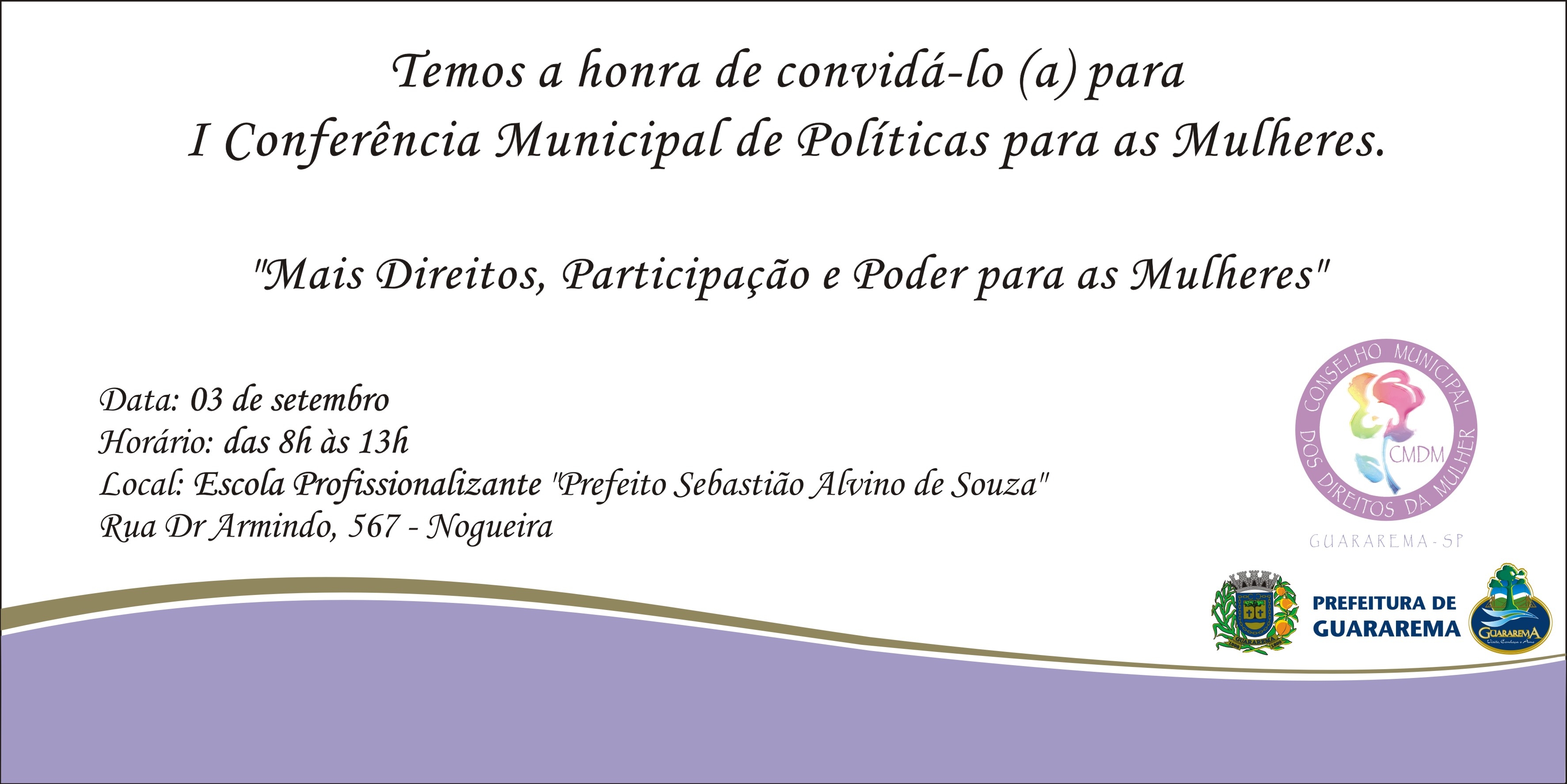 [Conselhosmulherbr] Convite 1ª Conferência Municipal de Políticas para as Mulheres Guararema - SP