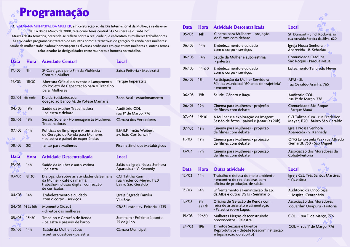 [ForumCoordenadorias] IV SEMANA DA MULHER EM SÃO LEOPOLDO/RS