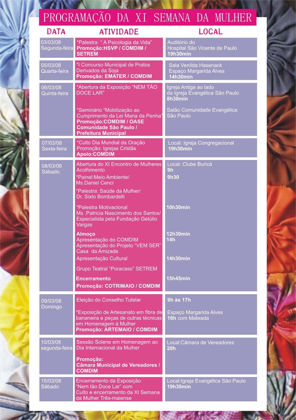 [ForumCoordenadorias] FW: Folder Semana da Mulher Tres de Maio RS