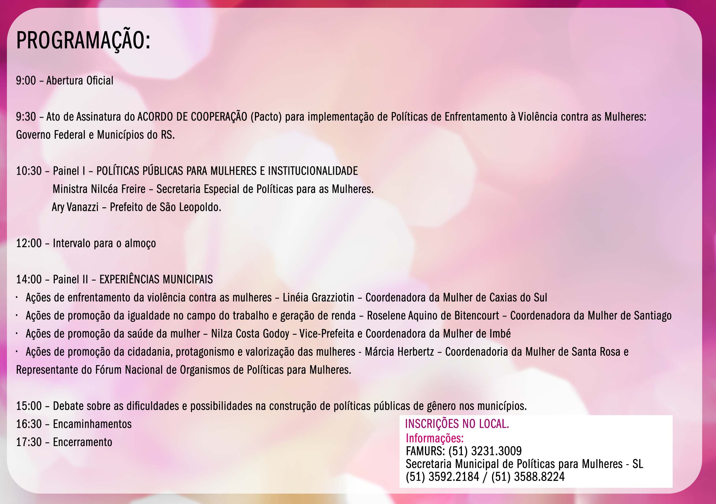 [ForumCoordenadorias] Forum Estadual (RS) para Mulheres - 05 de