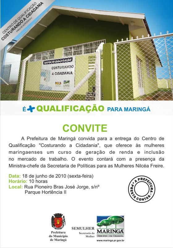 [ForumCoordenadorias] ENC: 18 de junho - Entrega do Centro de Qualificação "Costurando a Cidadania"