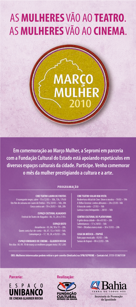 [ForumCoordenadorias] Fw: Confira a programação de "Mulheres vão ao teatro, mulheres vão ao cinema".