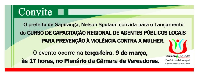[ForumCoordenadorias] Convite para Ato de Lançamento: CURSO DE CAPACITAÇÃO DE AGENTES PÚBLICOS LOCAIS PARA PREVENÇÃO À VIOLÊNCIA CONTRA A MULHER.