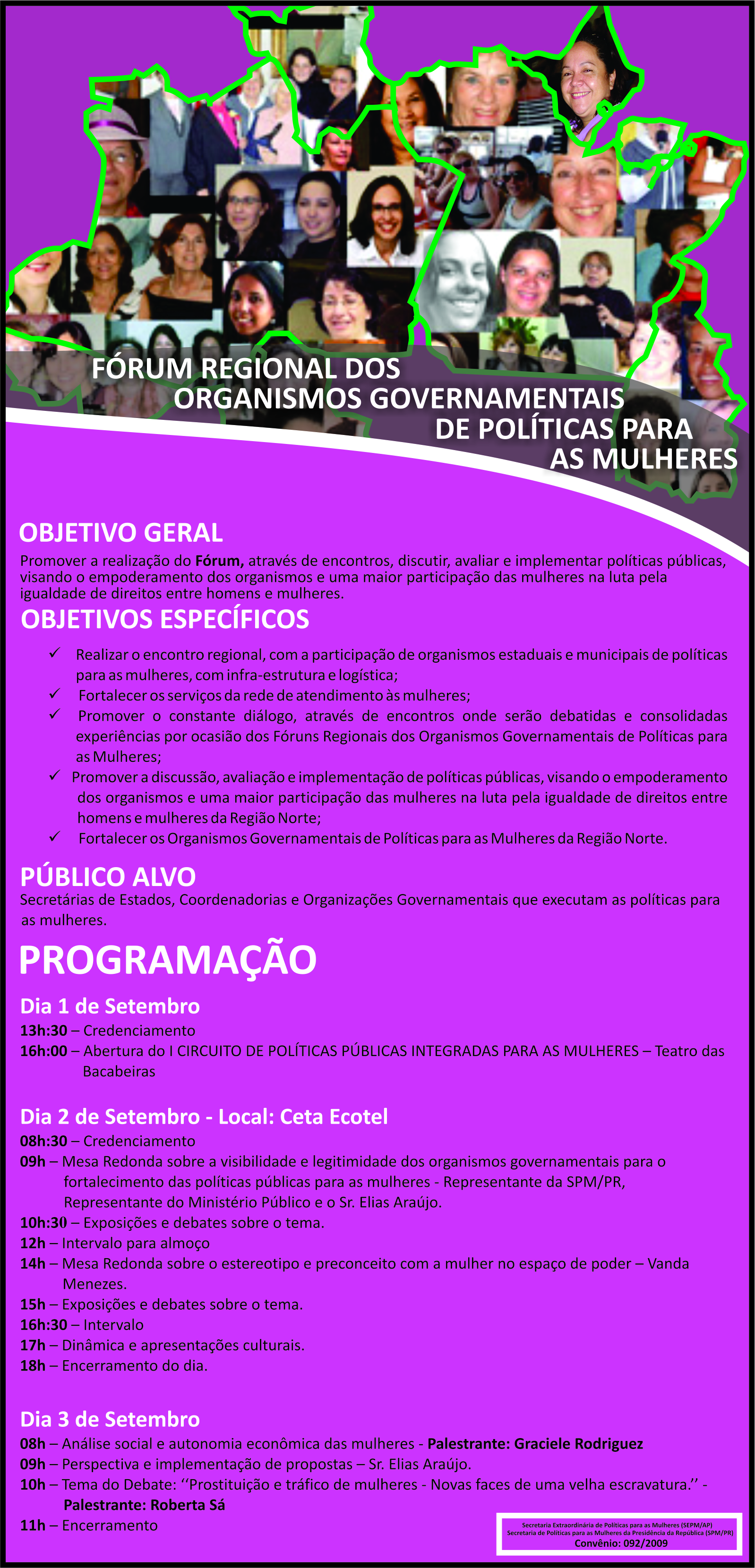 [ForumCoordenadorias] FW: Programação Forum da Regiao Norte.Participem! Mulheres Brasileiras .As Mulheres da Regiao Norte tem hojé um dia Especial a Abertura de Nosso Forum Regional no Amapá tao esperado.