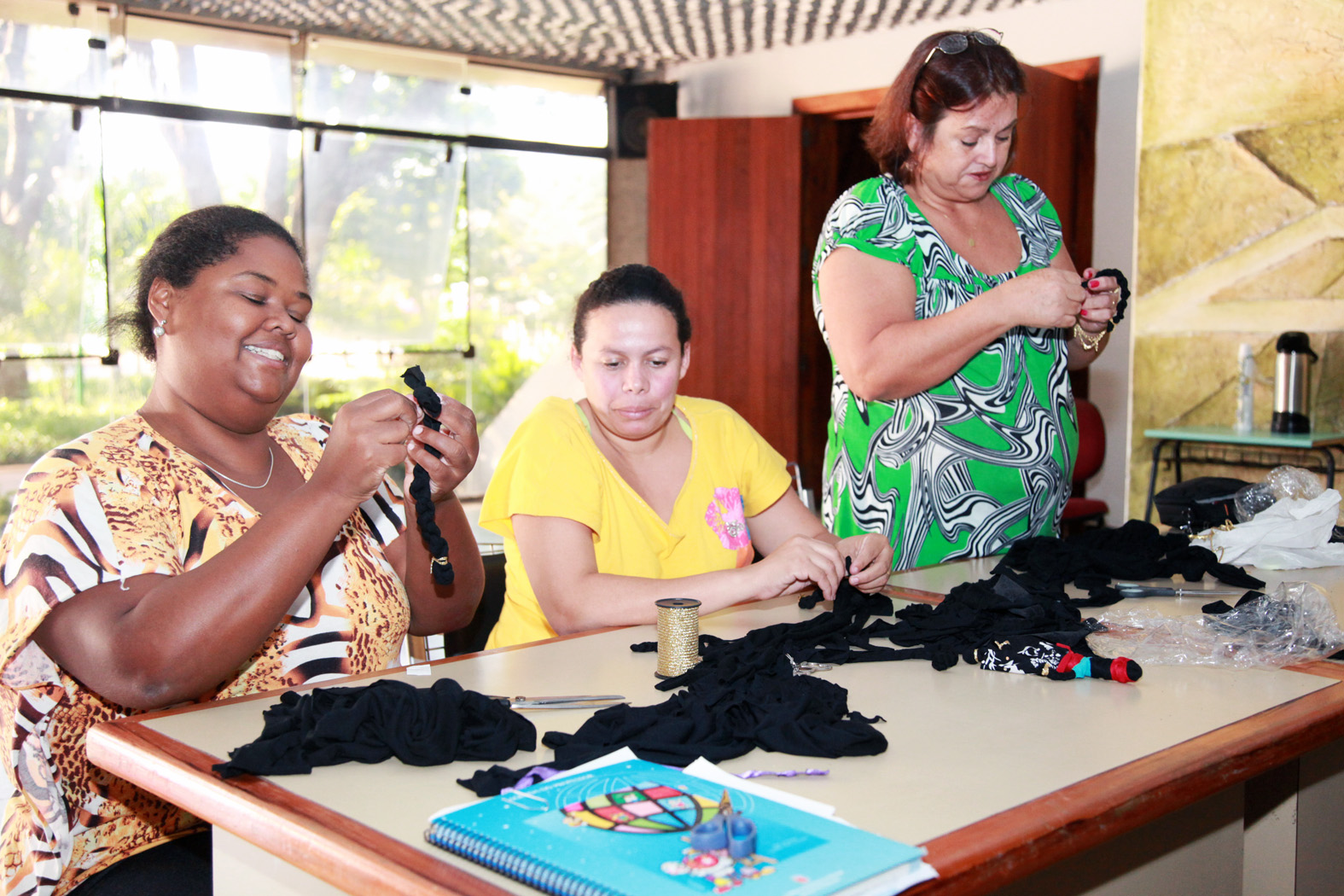 A Secretaria da Mulher promoveu nesta nesta quarta-feira (20), curso de confecção de bonecas Abayomi. Nesta primeira etapa o curso foi direcionado para mulheres que trabalham na área da saúde, educadoras, profissionais da Secretaria de Assistência Social e Cidadania – Sasc, e donas de casa. O objetivo da oficina é oferecer às profissionais de várias áreas uma maneira de trabalhar a terapia ocupacional com as pessoas atendidas nestes locais.