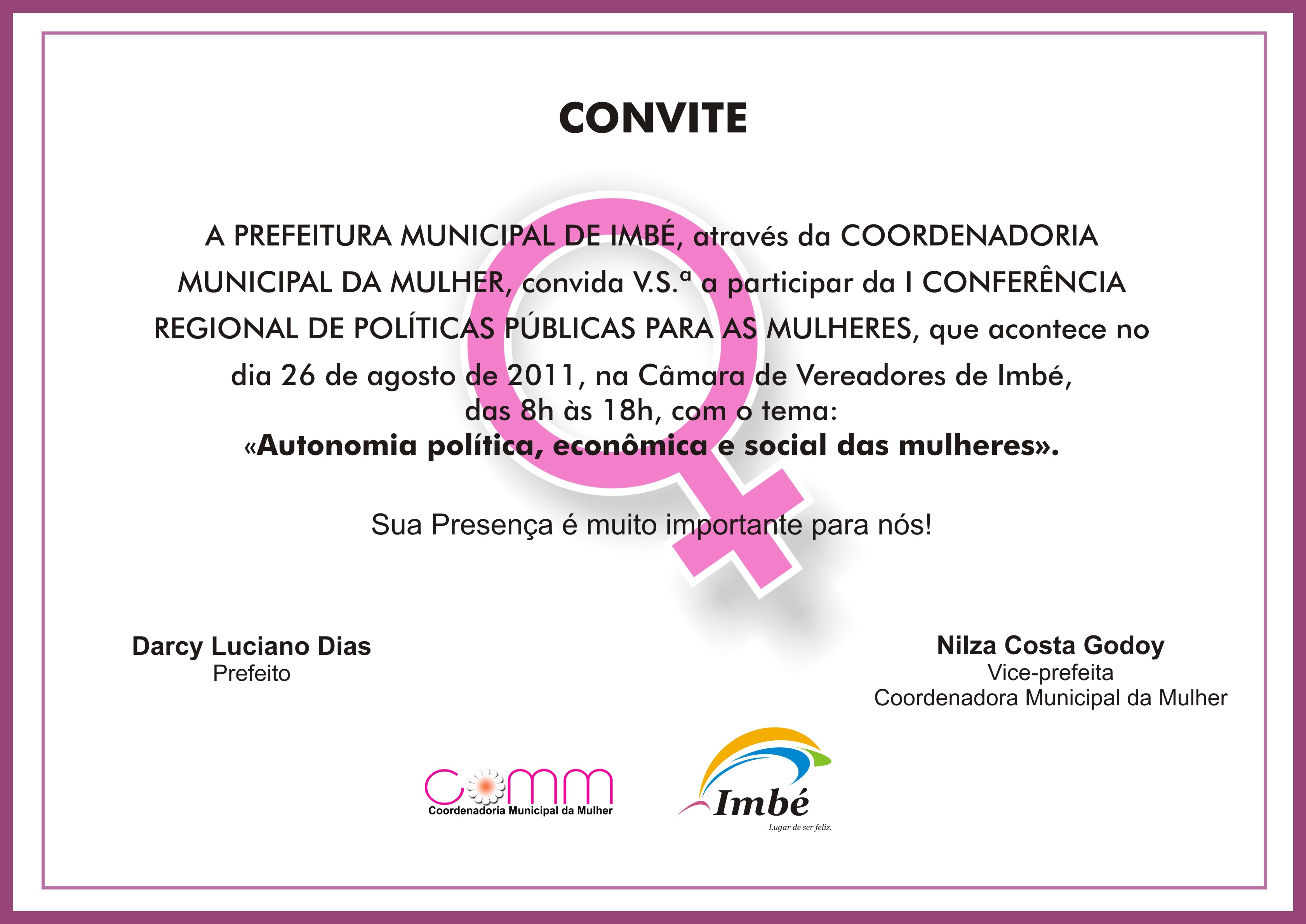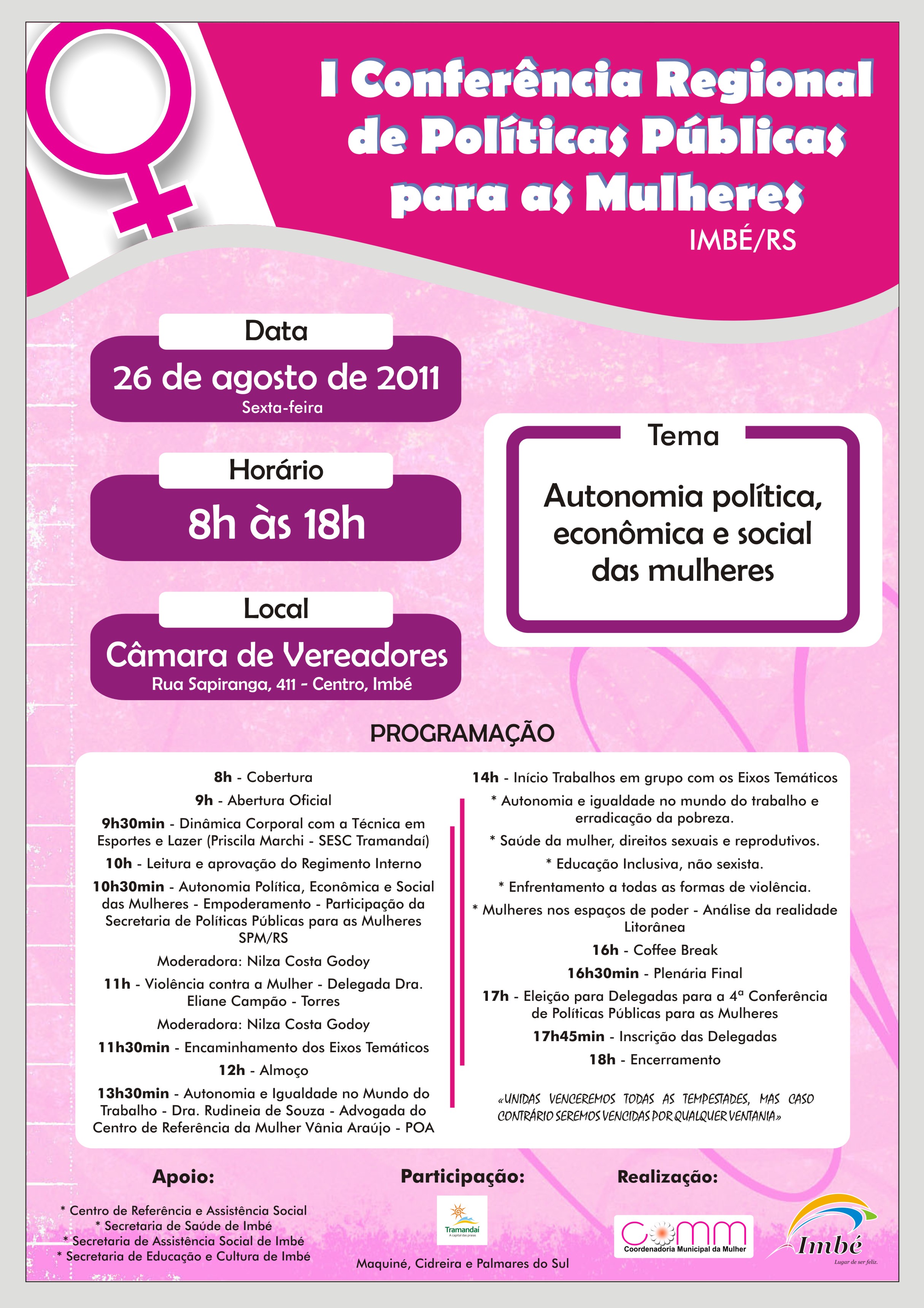 [ForumCoordenadorias] Convite I Conferência de Políticas Públicas para as Mulheres de Imbé.