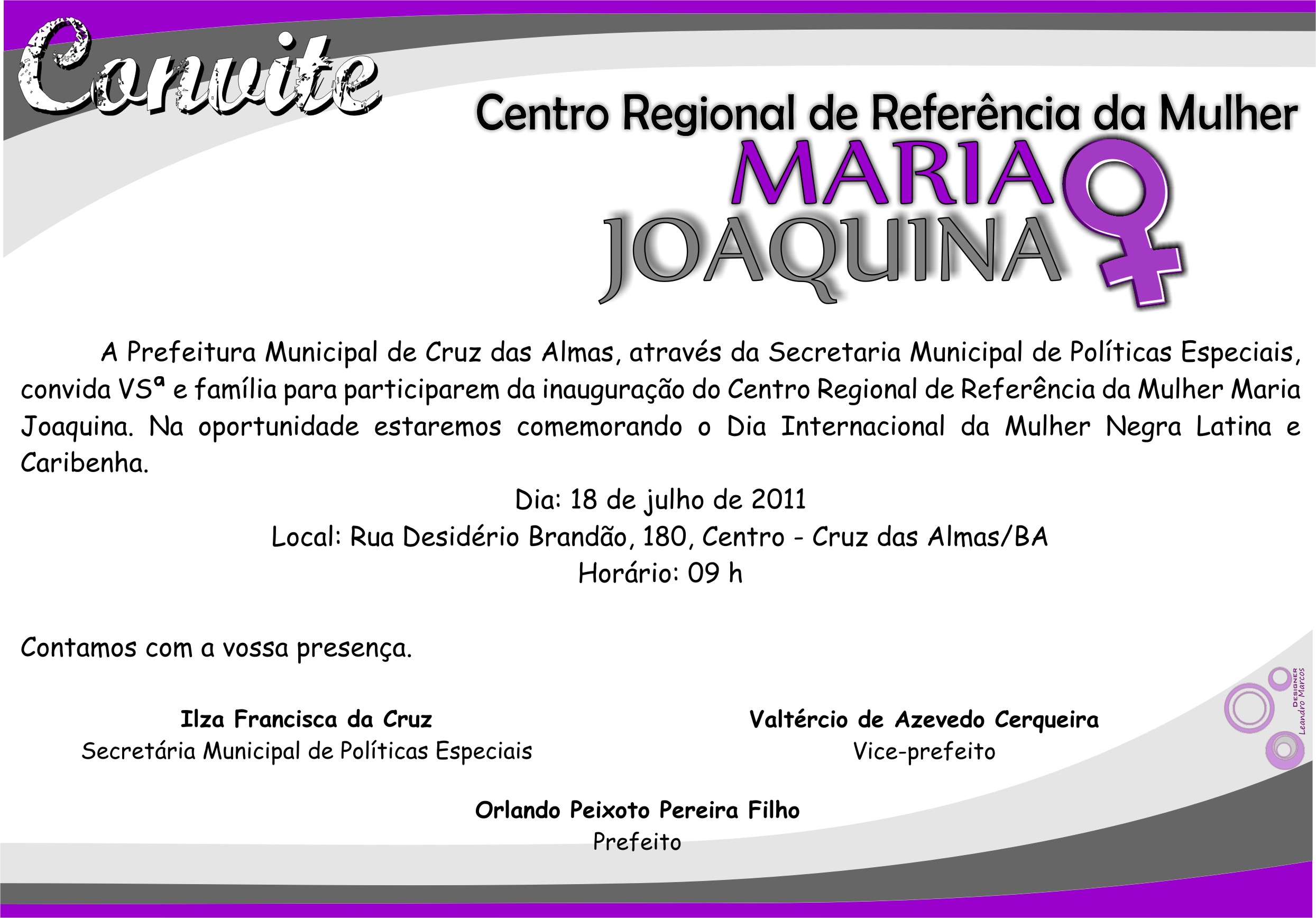 [ForumCoordenadorias] Convite da inauguração do Centro Regional de Referência da Mulher Maria Joaquina