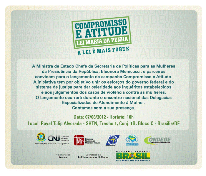 [ForumCoordenadorias] 7/8/12 - Convite lançamento da campanha "Compromisso e Atitude pela Lei Maria da Penha"
