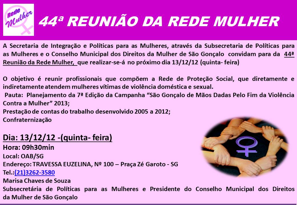 [ForumCoordenadorias] 44ª REUNIÃO DA REDE MULHER