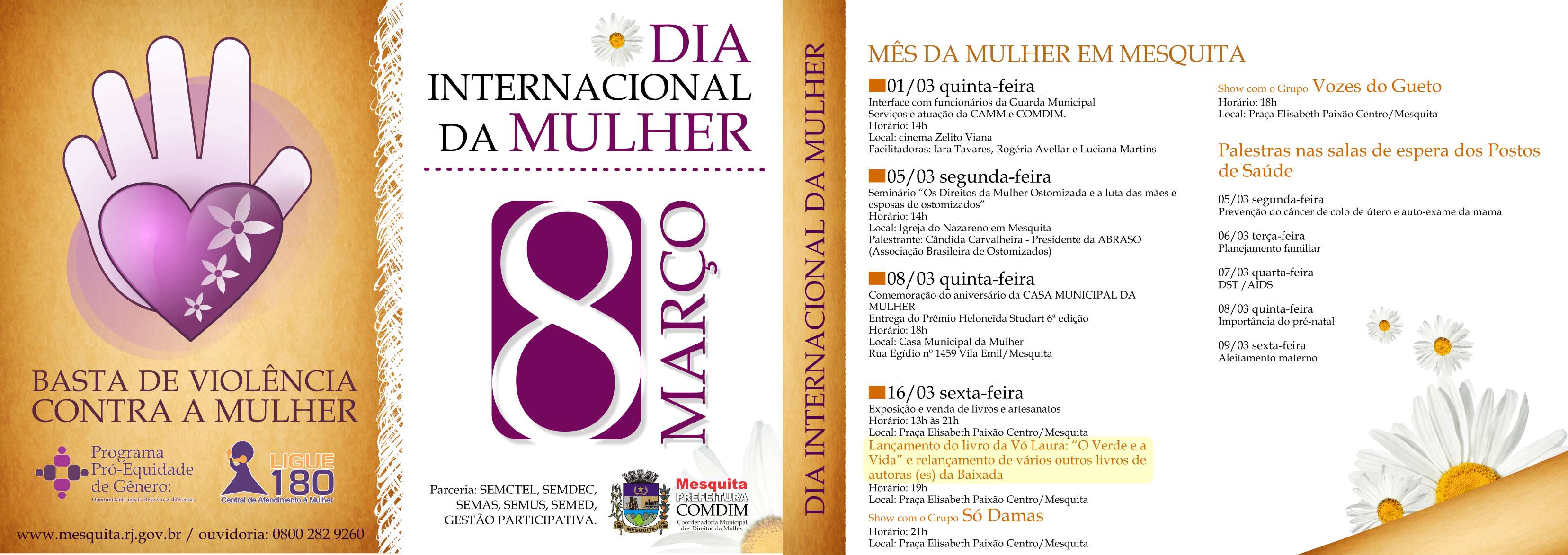 Estamos enviando a nossa programação do Mês da Mulher em Mesquita/RJ.