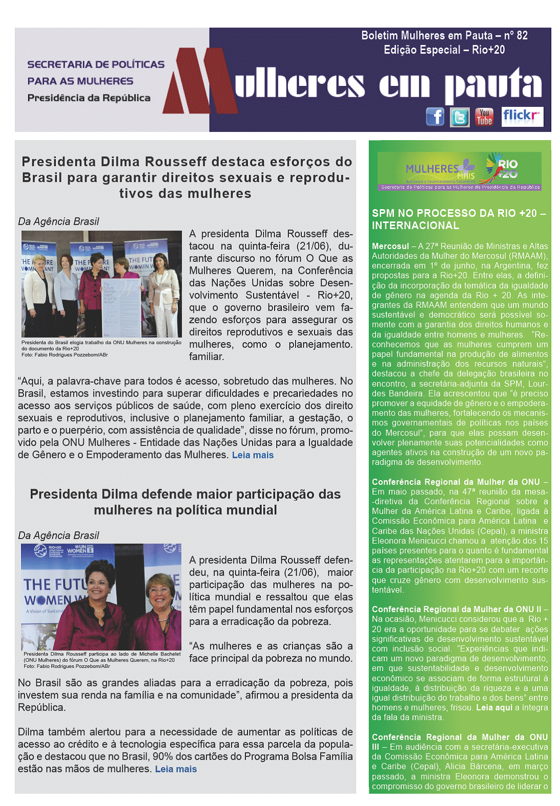 [ForumCoordenadorias] Boletim SPM/PR - Mulheres em Pauta: Edição Especial Rio + 20