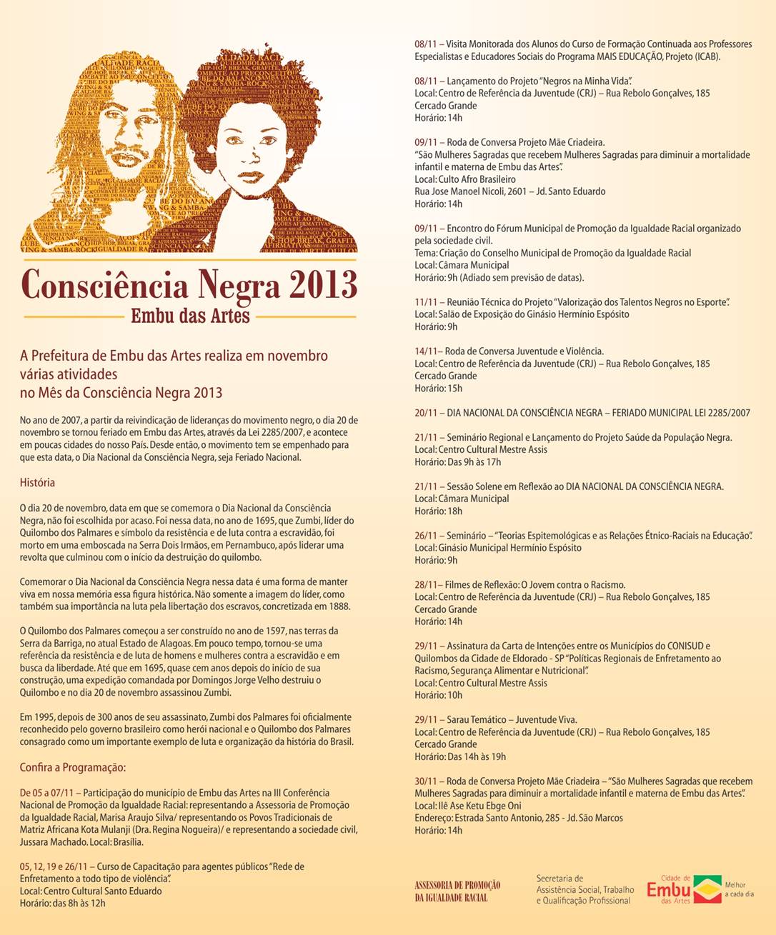 atividades no Mês da Consciência Negra. A programação segue em anexo,