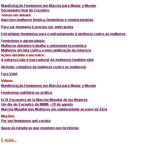 [ForumCoordenadorias] Feminismo em Marcha para Mudar o Mundo