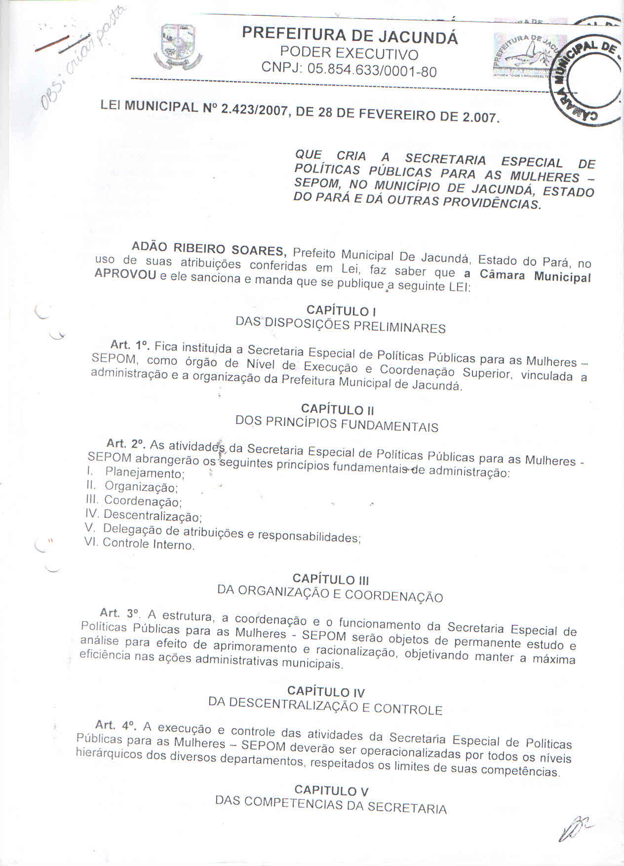 Nome : =?iso-8859-1?Q?Lei_criação_SEPOM.jpg?Tipo : image/jpeg