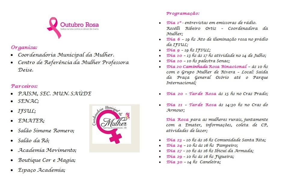 [ForumCoordenadorias] Programação Outubro Rosa Santana do Livramento