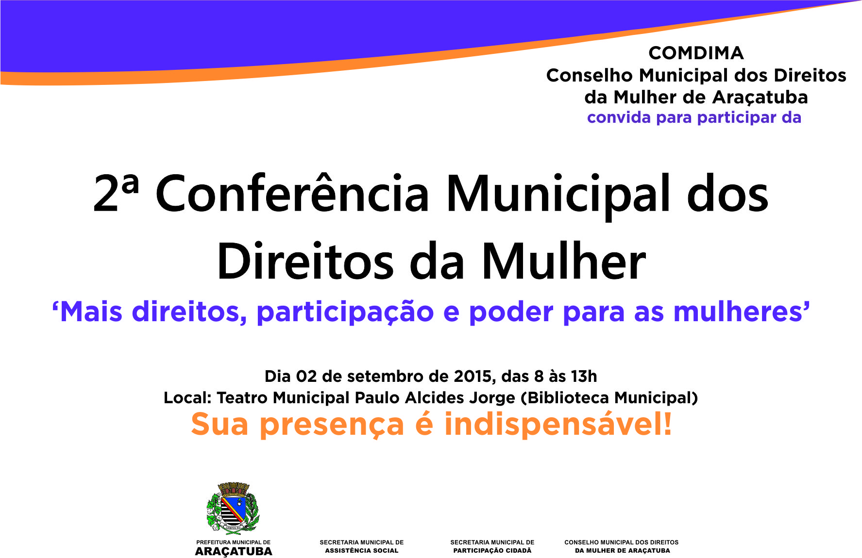 [ForumCoordenadorias] CONVITE p Conferência Municipal da Mulher 2/9 Araçatuba - SP