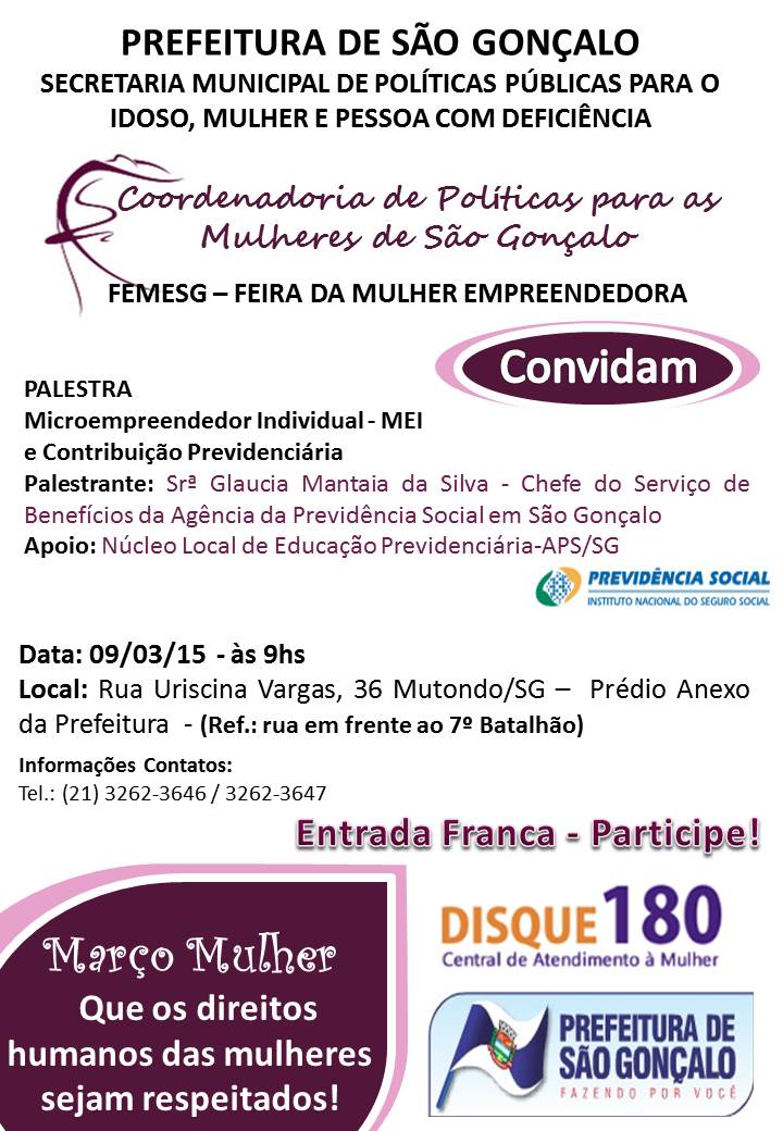 [ForumCoordenadorias] Março Mulher - Palestra sobre Microempreendedor Individual - MEI e Contribuição Previdenciária.