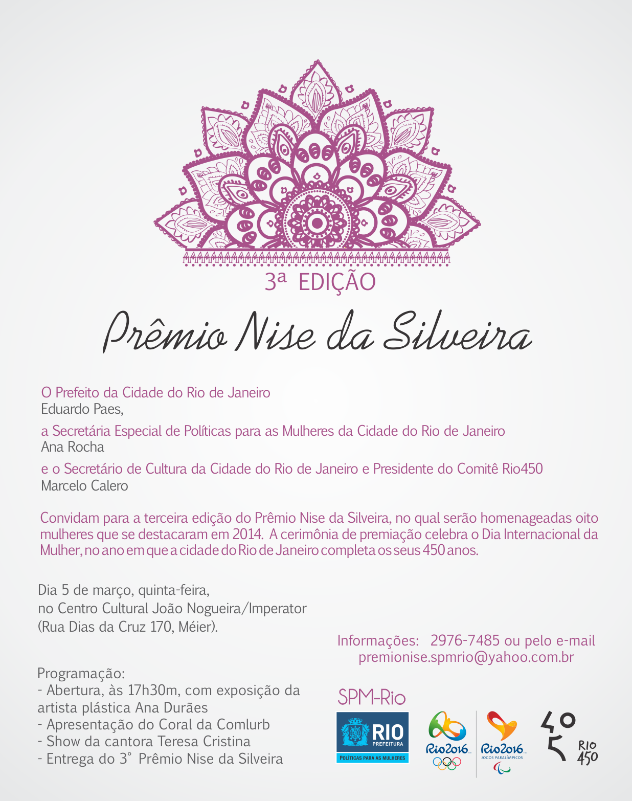 [ForumCoordenadorias] [Poss í vel Spam] SPM-Rio convida para a entrega do terceiro Pr ê mio Nise da Silveira