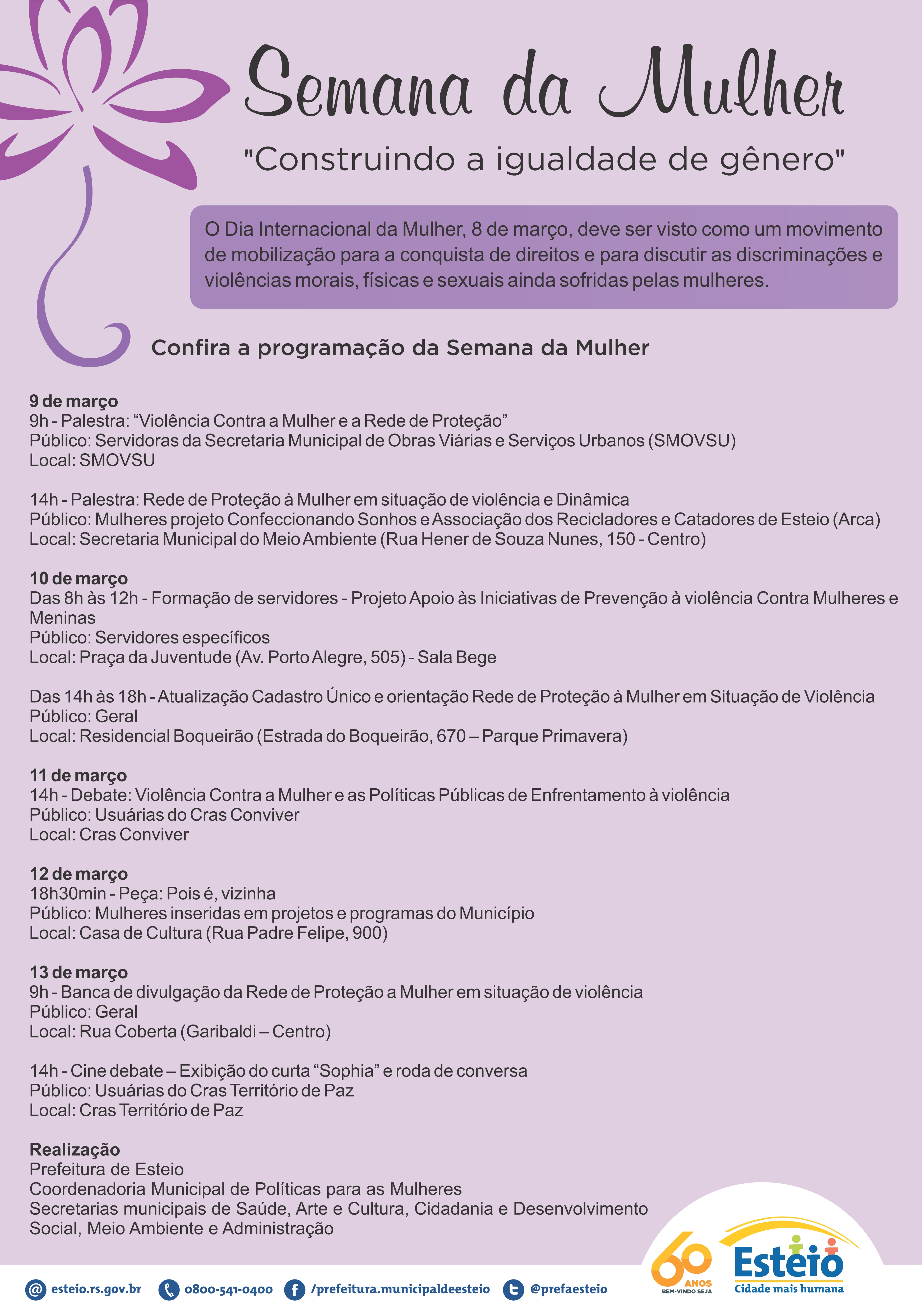 [ForumCoordenadorias] Programação Semana da Mulher Esteio