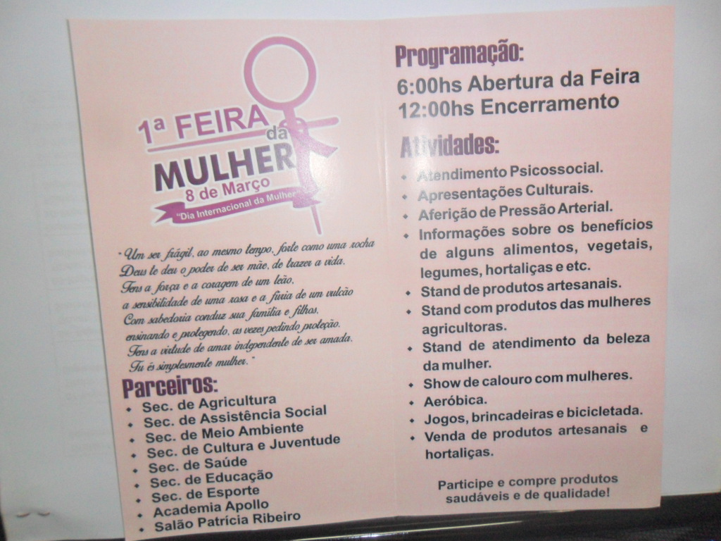 [ForumCoordenadorias] Programação 8 de Março Sec. Mulher Colinas