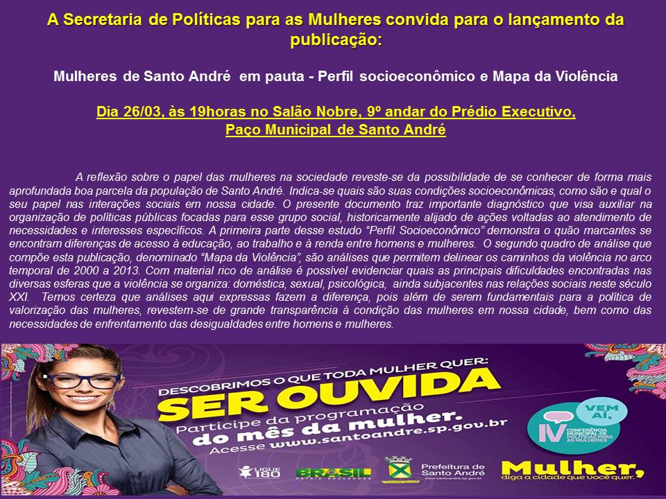 [ForumCoordenadorias] lançamento da publicação "Mulheres de San to André em Pauta - perfil socioeconomico e o mapa da violência"