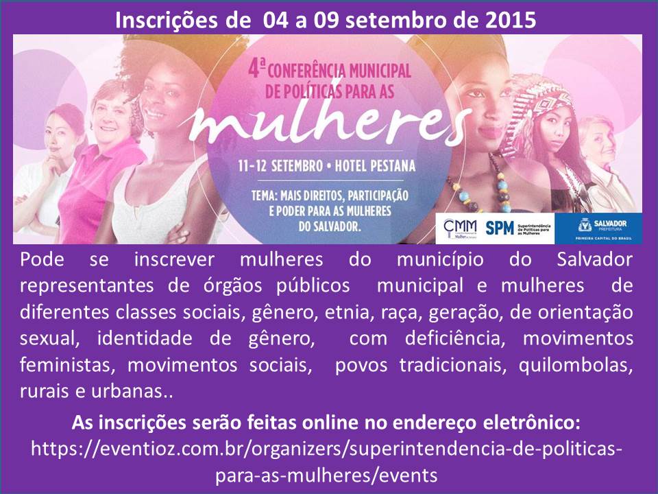 [ForumCoordenadorias] 4ª Conferência Municipal de Politicas para as Mulheres do Salvador