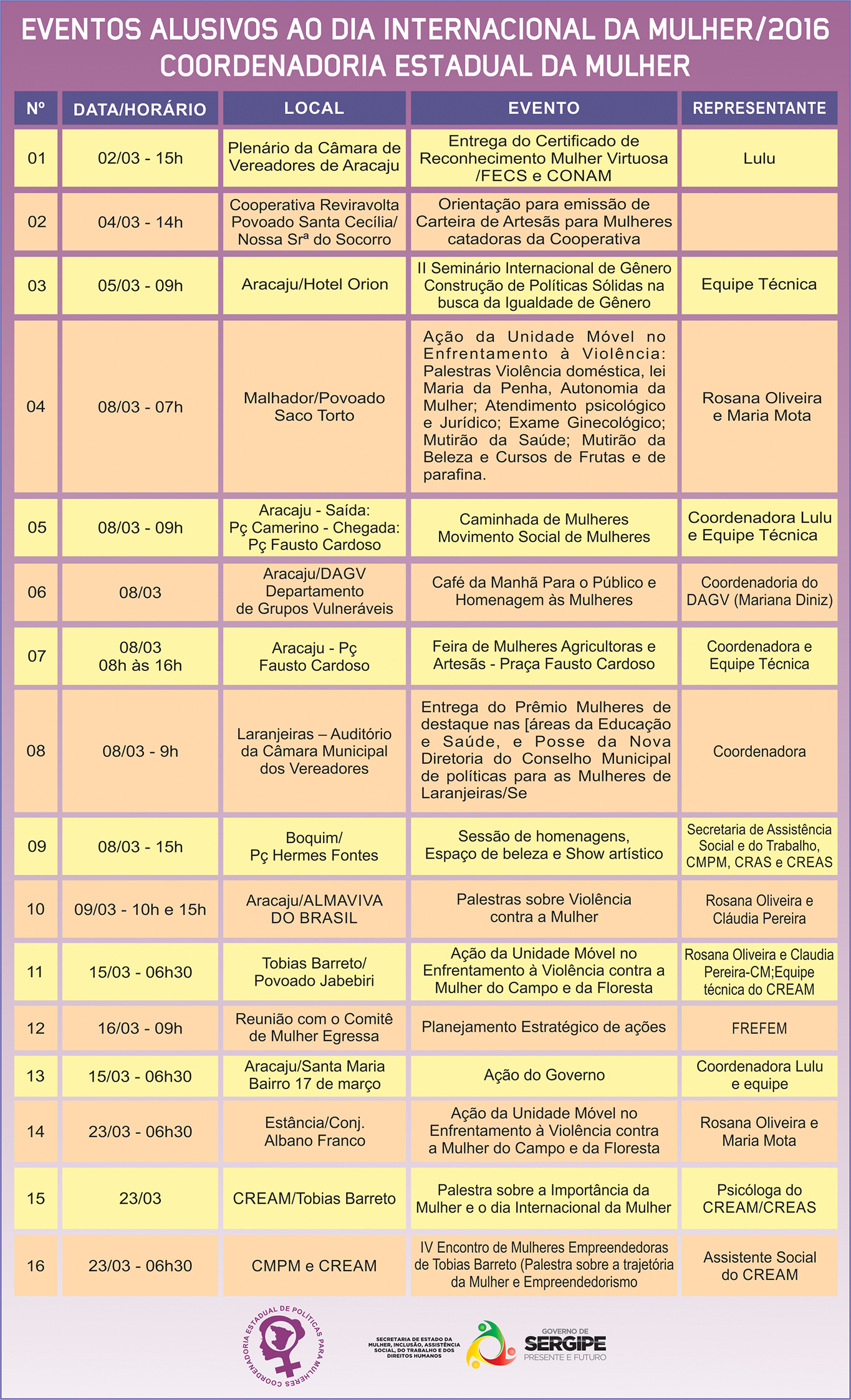 [ForumCoordenadorias] PROGRAMAÇÃO ESTADUAL DE SERGIPE PARA O MÊS DA MULHER