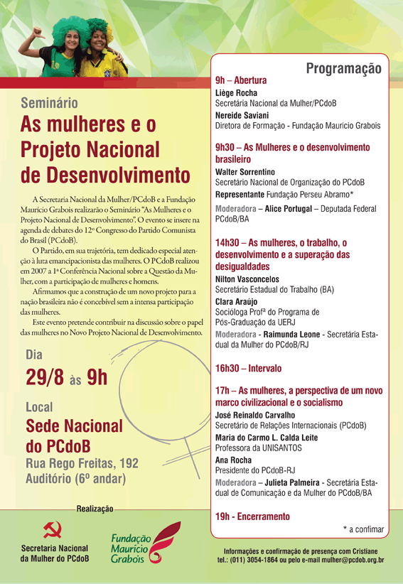 A Secretaria Nacional da Mulher/PCdoB e a Fundação Maurício Grabois convidam