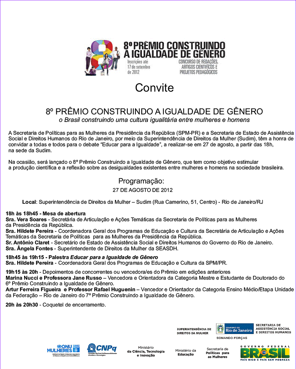 [Pactonacional] ENC: Convite - 8º Prêmio Construindo a Igualdade de Gênero