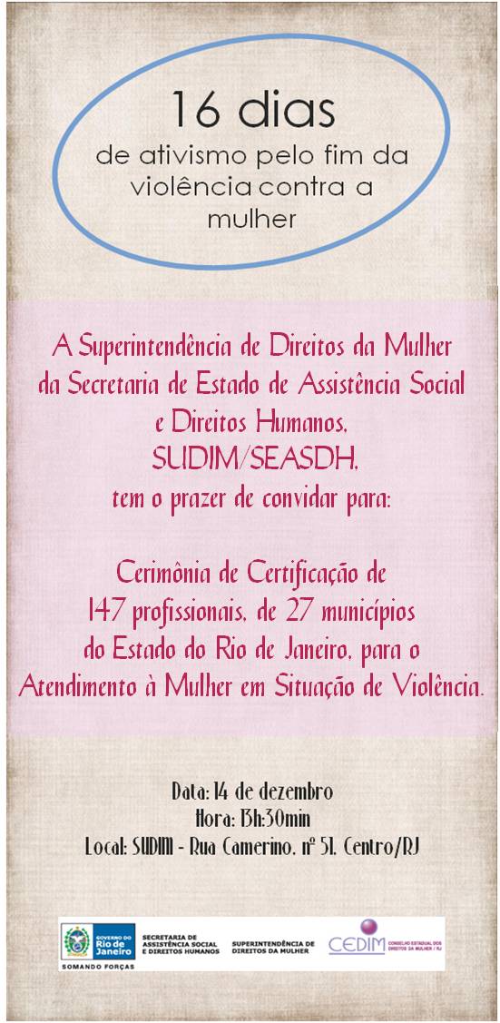 [Pactonacional] Fwd: SUDIM - Convite para cerimônia de certificação de capacitação para Atendimento à Mulher em Situação de Violência - lista de profissionais certificad@s