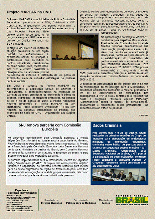 [Pactonacional] ENC: Informativo "Enfretamento ao Tráfico de Pessoas" Edição 1, nº 2, Agosto 2012