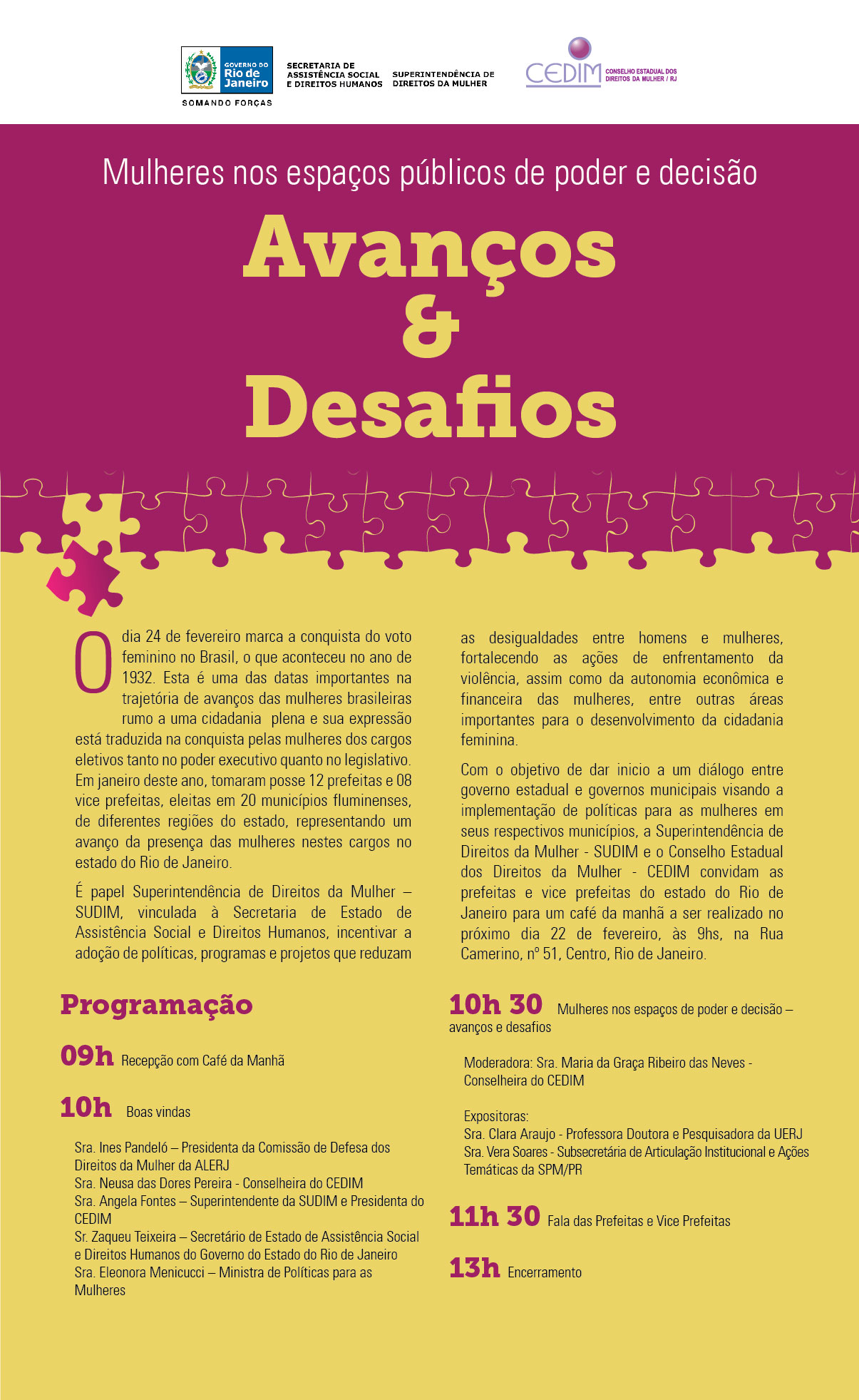 [Pactonacional] Convite: Mulheres nos Espaços Públicos de Poder e Decisão - RJ
