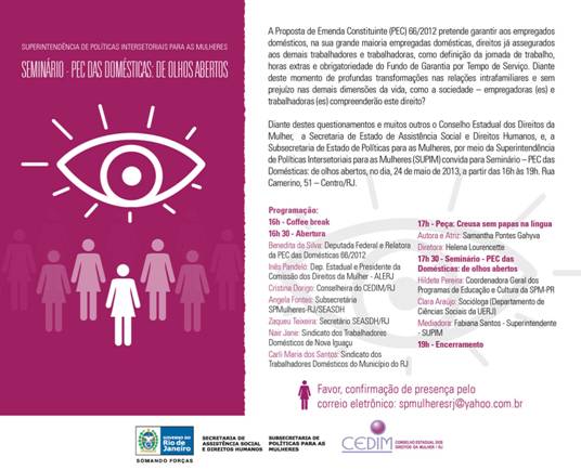 [Pactonacional] ENC: CONVITE - Seminário - PEC das Domésticas: de olhos abertos